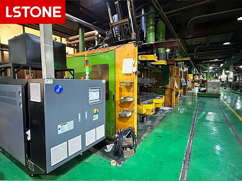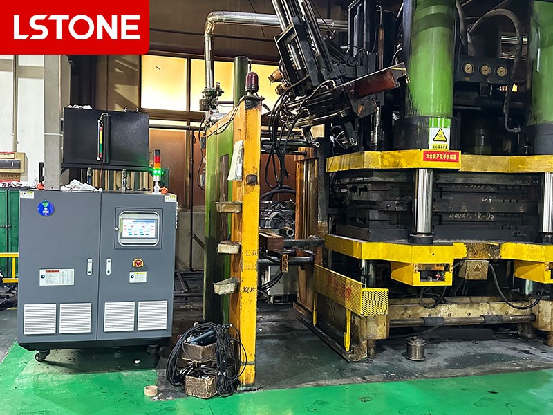 為了解決平板硫化機的溫控問題,定制了平板硫化機雙機模溫機,它是一種專門為平板硫化機設計的溫控設備。采用60KW+60KW的功率配置,可以同時給兩臺平板硫化機提供足夠的熱量,滿足橡膠履帶生產的高溫需求。